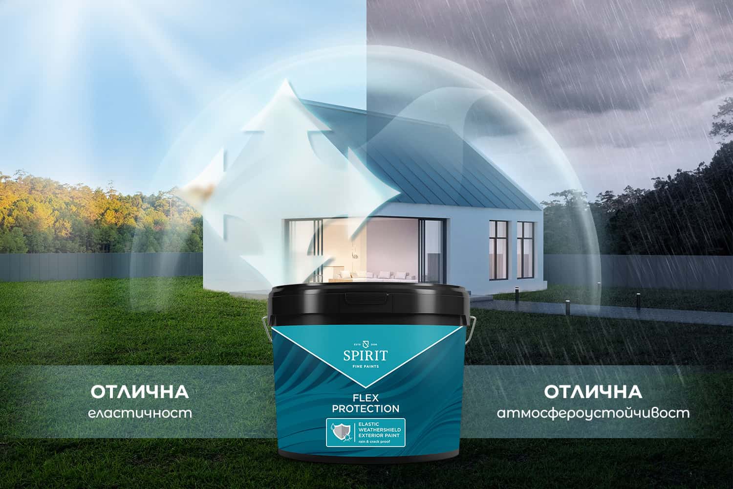 SPIRIT FLEX PROTECTION е висококачествена екстериорна боя с изключителна еластичност, разработена да предпазва фасадите от напукване, дори при значителни температурни колебания. Благодарение на своята модерна структура, покритието създава стабилен и омрежващ филм, който осигурява дълготрайна защита и поддържа повърхностите чисти за по-продължителен период.